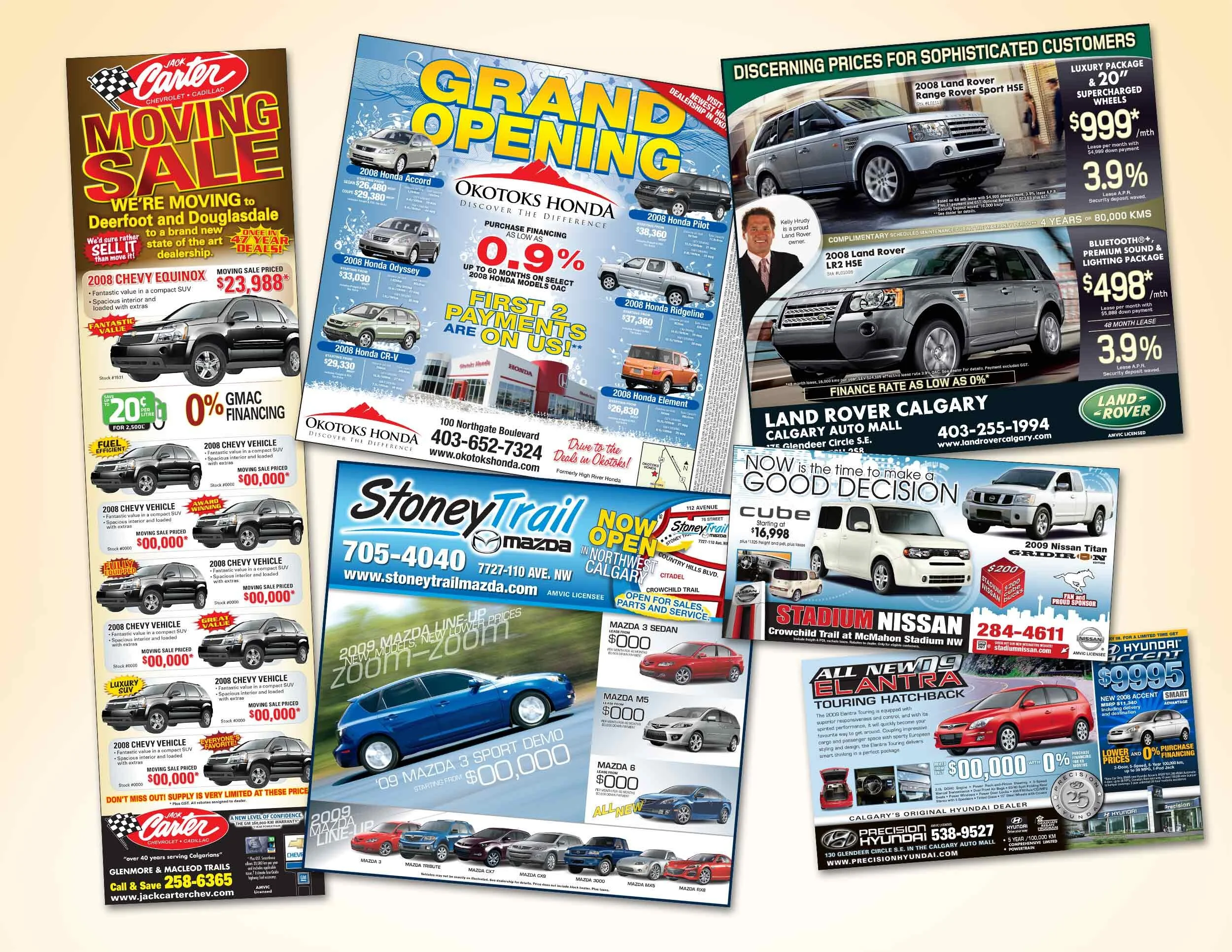 Local car dealerships were a large part of the clientele for the Calgary Herald newspaper. Each dealer would request an ad with specific car models and information. One of the main challenges was to keep the ads looking new and fresh from all the other competing advertisements.